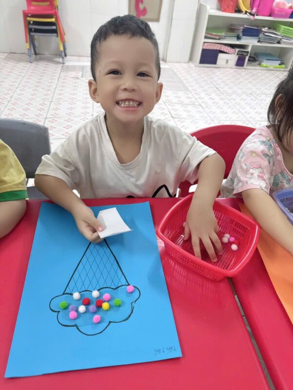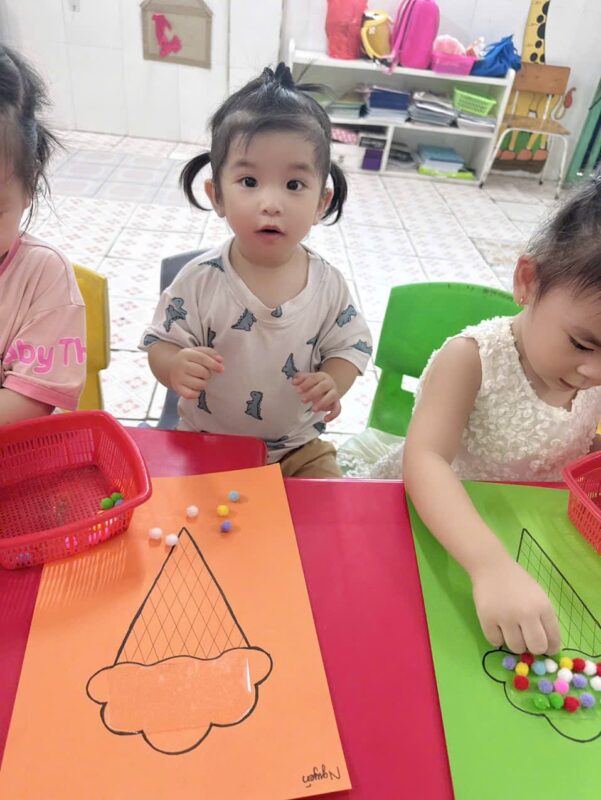 Tuy còn vụng về, keo dán có thể lem một chút, nhưng ánh mắt rạng rỡ và tiếng cười thích thú của các bé đã làm bừng sáng cả lớp học. Mỗi que kem trang trí là một tác phẩm độc đáo mang dấu ấn riêng của từng bé.