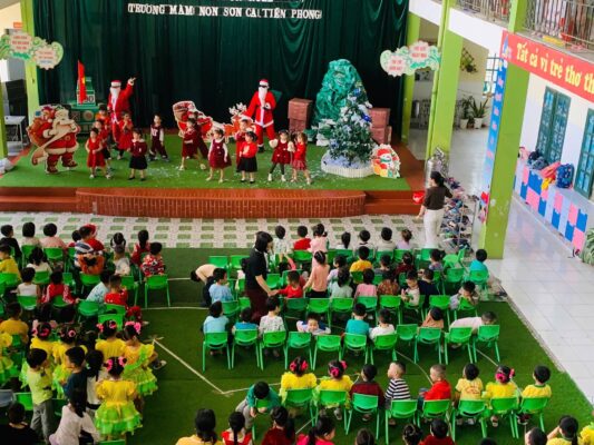 Khi những cơn gió se lạnh của mùa đông khẽ chạm ngõ, cũng là lúc không khí Giáng Sinh bắt đầu lan tỏa khắp mọi nơi, mang theo niềm vui, sự ấm áp và những điều kỳ diệu. Hòa chung không khí ấy, Trường Mầm non Sơn Ca – Tiền Phong đã tổ chức chương trình vui Giáng Sinh đầy ý nghĩa, mang đến cho các bé một ngày hội rực rỡ sắc màu và tràn ngập tiếng cười.