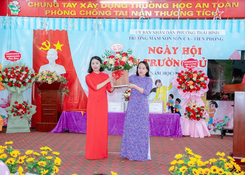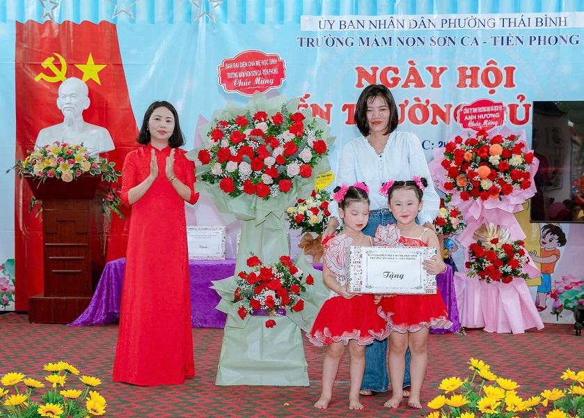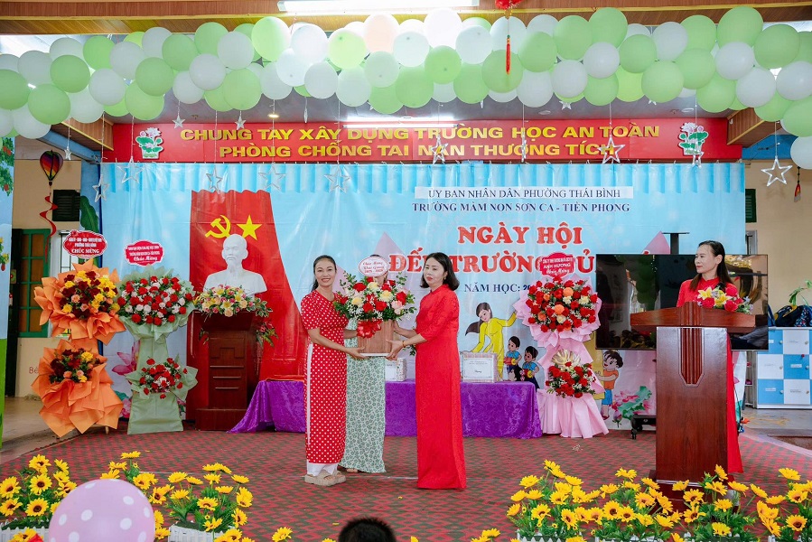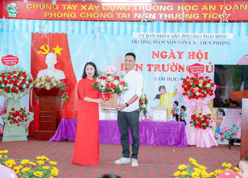 Hôm nay, Trường Mầm non Sơn Ca Tiền Phong hân hoan tổ chức lễ khai giảng năm học mới trong không khí vui tươi, rộn ràng. Nhà trường vinh dự được đón tiếp các bác lãnh đạo phường, công an phường đã đến tặng hoa và gửi lời chúc mừng.